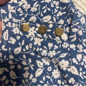 Such a beautiful dress. Fit and flare style, has three gold buttons on the shoulder with LRL engraved, beautiful country cottage core style