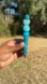 Handcrafted pen features a sparkly, blue rhinestone.