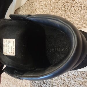 Step out in style with these sleek black high-top sneakers. Perfect for any casual outing, these shoes offer both comfort and fashion.