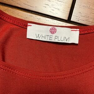 This elegant Burnt red dress is perfect for any occasion. Its classic design offers a flattering fit and timeless style. APPROXIMATE MEASUREMENTS: shoulder 15”; pit to pit 19”; length 35” with 3/4 length sleeves.