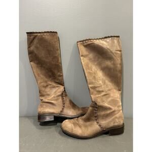 Anthropologie Miss Albright Leather Ruffled Boot Brown Woman Size 10B