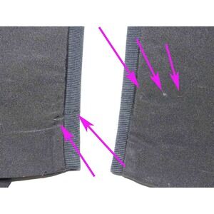 Excellent overall condition with limited signs of use, like some paint loss on the zipper pulls, a snag, and a spot on the inside back of the lower legs, as seen in the pictures.