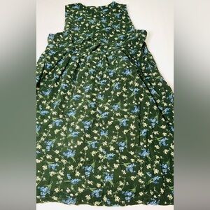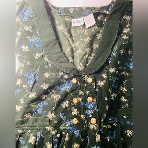 Capacity Woman dress in size 3X made from 100 percent cotton with a beautiful green floral print and button front details. This piece gives major cottagecore vibes with its soft vintage look and flowy pleated skirt, perfect for picnics, farmers markets, or easy everyday styling.