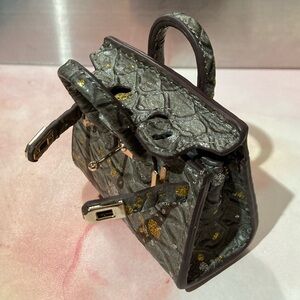πŸ‘œ Handmade Genuine Leather Mini Iridescent Fish Scale Birkin Tote Bag Charm