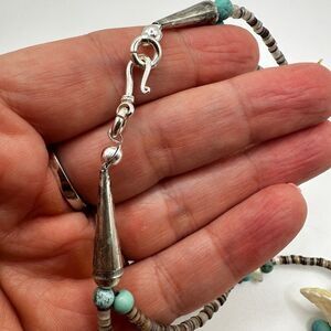 There are some amazing fetish beads on this piece. Mother of pearl birds and turtles! Then you have some stone birds and turquoise figure.