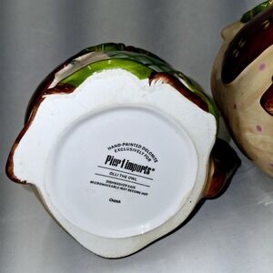 The Pier 1 Imports Olli the Owl Large Coffee Mug Tea Hand Painted Dolomite Set of 2 is a charming addition to any kitchen or dining room. These multicolored mugs feature a whimsical owl design, making them a delightful collectible item. The hand-painted details add a unique touch to the set, while the large size is perfect for enjoying a generous cup of coffee or tea. Made in China by Pier 1 Imports, these mugs are sure to bring a touch of fun and personality to your home.