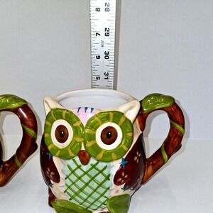Pier 1 Imports Olli the Owl Large Coffee Mug Tea Hand Painted Dolomite Set Of 2