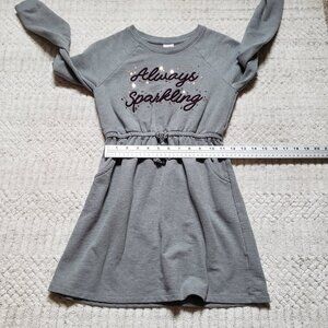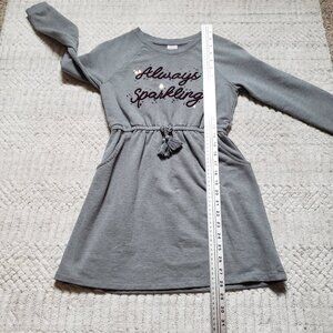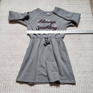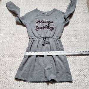 Adorable and comfy long‑sleeve dress featuring a glittery “Always Sparkling” graphic and a soft, stretchy knit fabric perfect for school, casual wear, or layering in cooler seasons. The gathered waist adds a cute, twirl‑friendly silhouette. Great pre‑owned condition with vibrant graphics and no major flaws.