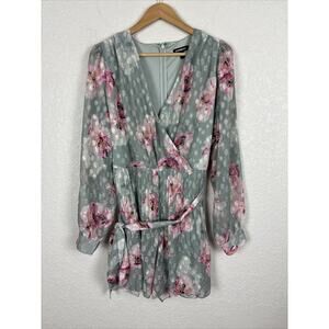 Express Women’s Pleated Wrap Front Romper Size Large Floral Cottagecore Coquette