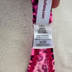 Luli Fama Bikini Pink Leopard Bandeau Push Up Top Ruched Brazilian Bottom