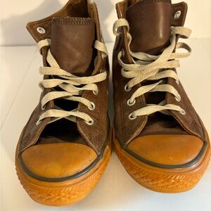 Converse Chuck Taylor All Star high-top sneakers. Brown leather. Size Youth 3