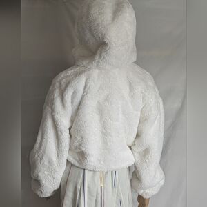 So White Faux Fur Hoodie Bomber Jacket Sz XS Or S Pockets Zip Up