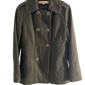 Kenneth Cole New York Pea Coat Size 6 Wool Blend Green Military Double Breasted