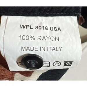 The Riscatto Men's Large Black Short Sleeve Shirt is a stylish and sophisticated addition to any man's wardrobe. Made in Italy from high-quality rayon fabric, this button-up shirt features a sleek black color with subtle leaf patterns for a touch of flair. The short sleeves make it perfect for warmer weather, while the regular fit ensures a comfortable and flattering silhouette. Ideal for casual or dressier occasions, this shirt is a versatile and timeless piece that will elevate any outfit.