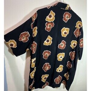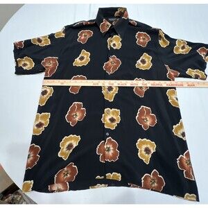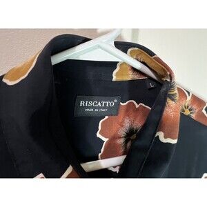Riscatto Men Large Black w/ Leaves Made in Italy Rayon Short Sleeve Shirt