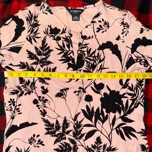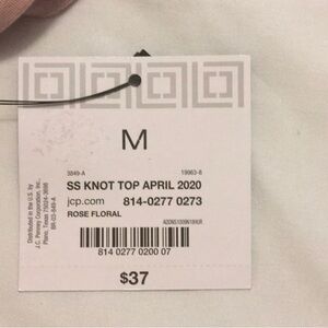 Chic blouse with bold floral design. Soft fabric. Ideal for casual outings. Liz Claiborne Career SS Knot Short Sleeve Blouse