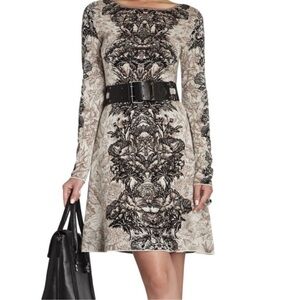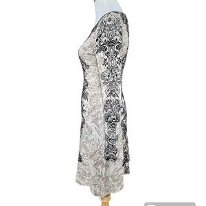 Fabric is a silk and cotton blend, feels like a soft and lightweight sweater material.