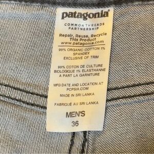 Classic Patagonia Iron Clad denim jeans, men’s size 36, in a versatile gray wash, straight leg and 5-pocket style. Made with 99% organic cotton and 1% spandex to add a little stretch. Comfortable fit. Ideal for everyday wear. Made to last with quality stitching and ethical construction. Excellent preowned, no stains, holes, or major wear.