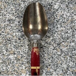 Androck cake icing spatula. Wood handle solid. Patina on metal with some possible rust developing. Someone painted the handle.