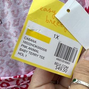 CABANA BY CROWN & IVY Easy Breezy Baby red pink Terry Tee Womens 1X NWT NEW
