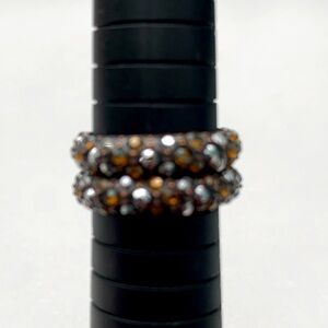 NEW WITHOUT TAGS these TWO beautiful band rings feature smoky bronze orange/brown imitation topaz and silver/clear crystals. Stunning when the light hits it just right.