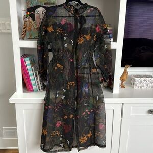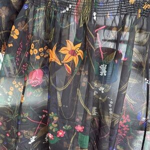 Silk organza sheer dress. Interior tag has been cut out, but otherwise in excellent condition. Size xs but will also fit a small. Drop shoulders. Elastic waist measures 13”. pit to pit measures 18”. Many style options!