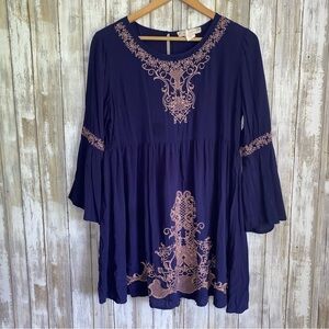 Flying Tomato Navy Embroidered Wide Sleeve Dress