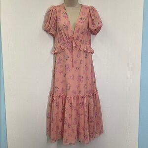LoveShackFactory X Target - Fleur Chiffon Pink Floral Lined Maxi Dress Size 8