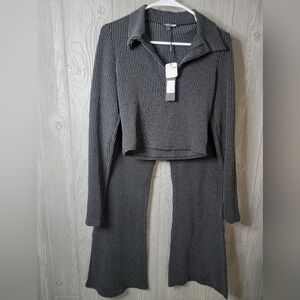 NWT Fashion Nova DarckGray Ribbed Knit Two-Piece Set