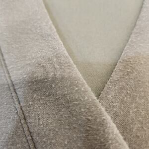 Super soft and stretchy. Color is a grayish beige.