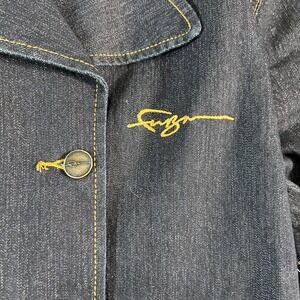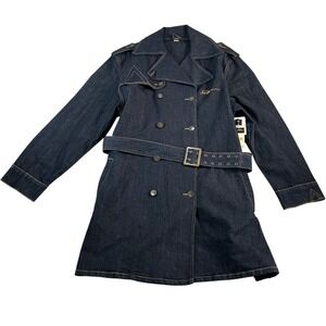 FUBU The Collection Denim Trench Coat Double Breasted Belted Dark Wash 3X New