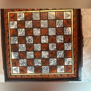 Hand Carved Wooden Chess 14.5” x 14.5”