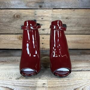 MICHAEL Michael Kors Lawson Open Toe Leather Bootie - Burgundy - 6.5 - NWOB