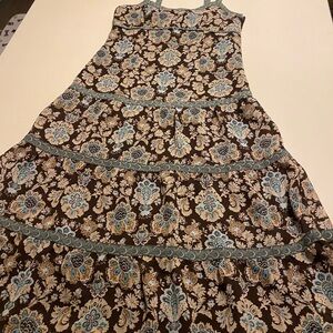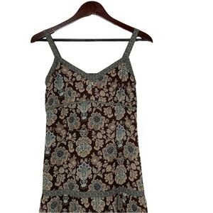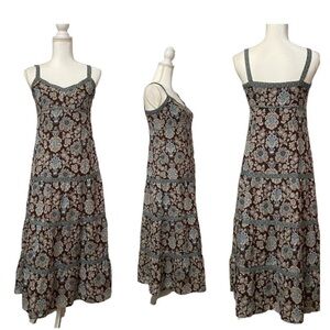 Ann Taylor LOFT Boho Floral Maxi Dress 0P | Brown Blue | Tiered Sundress | NWOT