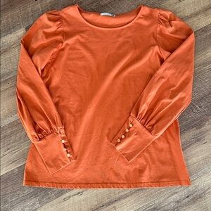 This elegant rust-colored women's top features a classic design with long sleeves and button details. Perfect for any occasion, it offers both style and comfort.