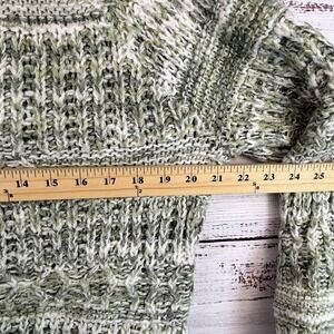 Chunky Knit Bell Sleeve Sweater M Oversized Marled Cozy Boho Cabincore Green