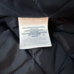 Never worn! Polyester quilted insulated interior. Nylon waterproof and windproof exterior. Adjustable hood and cuffs with strong Velcro. Zip tie adjustable waist. Easy care: machine washable/dryer safe. Reflective piping.