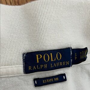 Ralph Lauren Polo off-white/ cream sweater with quarter-zip. Features classic Ralph Lauren logo.