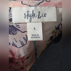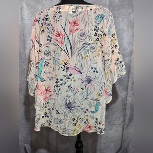 Style & Co Henley Cream Floral Top Roll Tab Sleeves Womens Large
