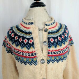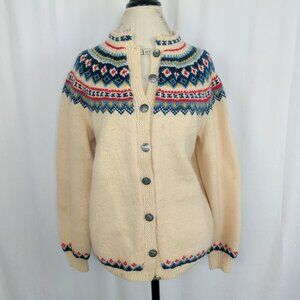 Vintage Nordic Knit Cardigan Medium Cream