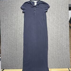 Laura Ashley Polo Shirt Dress Dress Womens Small Navy Blue Collared Maxi Vintage