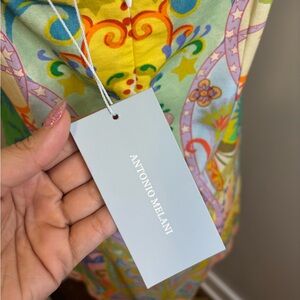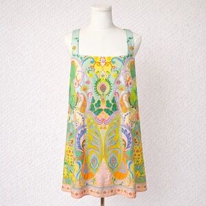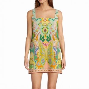 Antonio Melani, Antonio Melani dress, Eliana dress, NWT, new with tags, linen dress, printed linen, square neck dress, sleeveless dress, mini dress, short dress, shift dress, A-line dress, colorful dress, bright colors, statement dress, boho dress, boho chic, resort wear, vacation dress, summer dress, spring dress, tropical print, paisley print, scarf print, psychedelic print, mod print, boutique dress, festival outfit, brunch outfit, beach vacation, cruise outfit, garden party, baby shower dress, Easter dress, dopamine dressing, Barbiecore, coastal chic, Palm Beach style, Anthropologie style, Free People style, size M, warm weather outfit