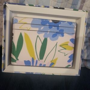 Vibrant card wallet with floral design. Features blue, purple, yellow, and green elements. Brand New in box! ALL SALES ARE FINAL Just enjoy