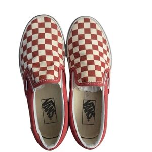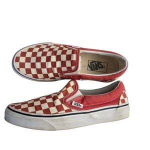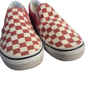 **SOLD ***Vans Rust And Cream Checkered Slip-On Sneakers 7 Women 5.5 Men