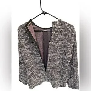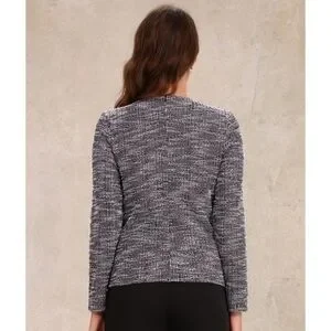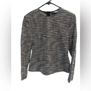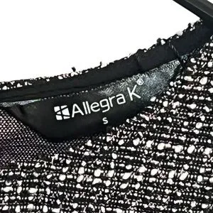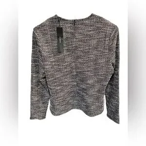 NWT Allegra K Tweed Zipper Back Long Sleeve Crew Neck Blouse - Pink/Black-Small