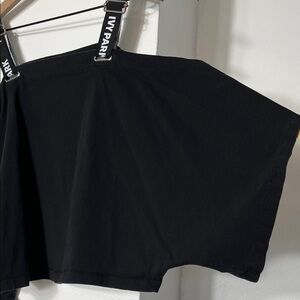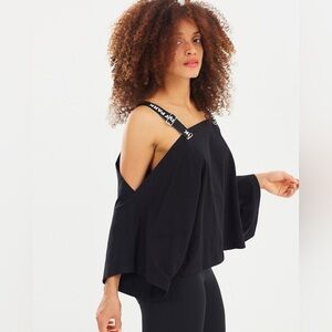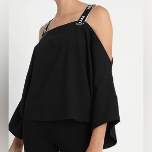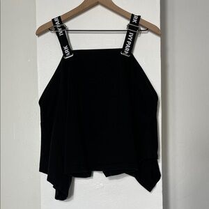 Stylish black camisole with bold logo straps. Perfect for layering or wearing alone.