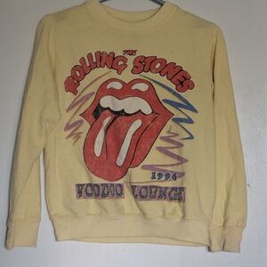 Yellow Rolling Stones Voodoo Lounge sweatshirt with graphic print. Some faint discoloration (see photos) normal wear, distressed look