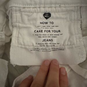 These jeans have 2 smudges on them. But are really cute on. They don’t fit me anymore. The Madewell Women's 11" High Rise Flare Jeans in white, size 25, are a stylish and versatile addition to any woman's wardrobe. Made from cotton denim, these jeans feature a solid pattern with a high rise waist and flared legs. Machine washable and perfect for everyday wear, these Madewell jeans are the perfect blend of comfort and style.