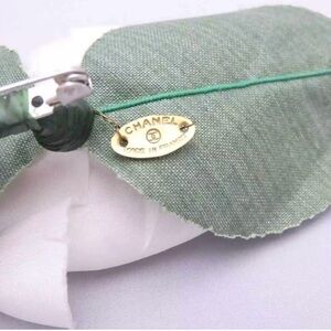 CHANEL. Rare design has deep green silk leaves with a bright white bud. A classic shape immortalized by Coco CHANEL as a signature accessory. Also beautiful as a hair accessory. EUC Fully signed at reverse.