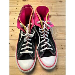 Converse Chuck Taylor double tongue High Top Sneakers Black neon Women's Size 7